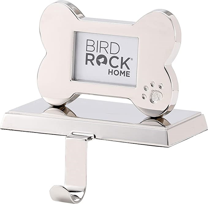BIRDROCK HOME Dog Bone Photo Stocking Holder for Mantel | Chrome