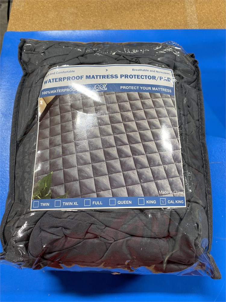 GRT Cal King Size Waterproof Quilted Fitted Mattress Pad - Grey