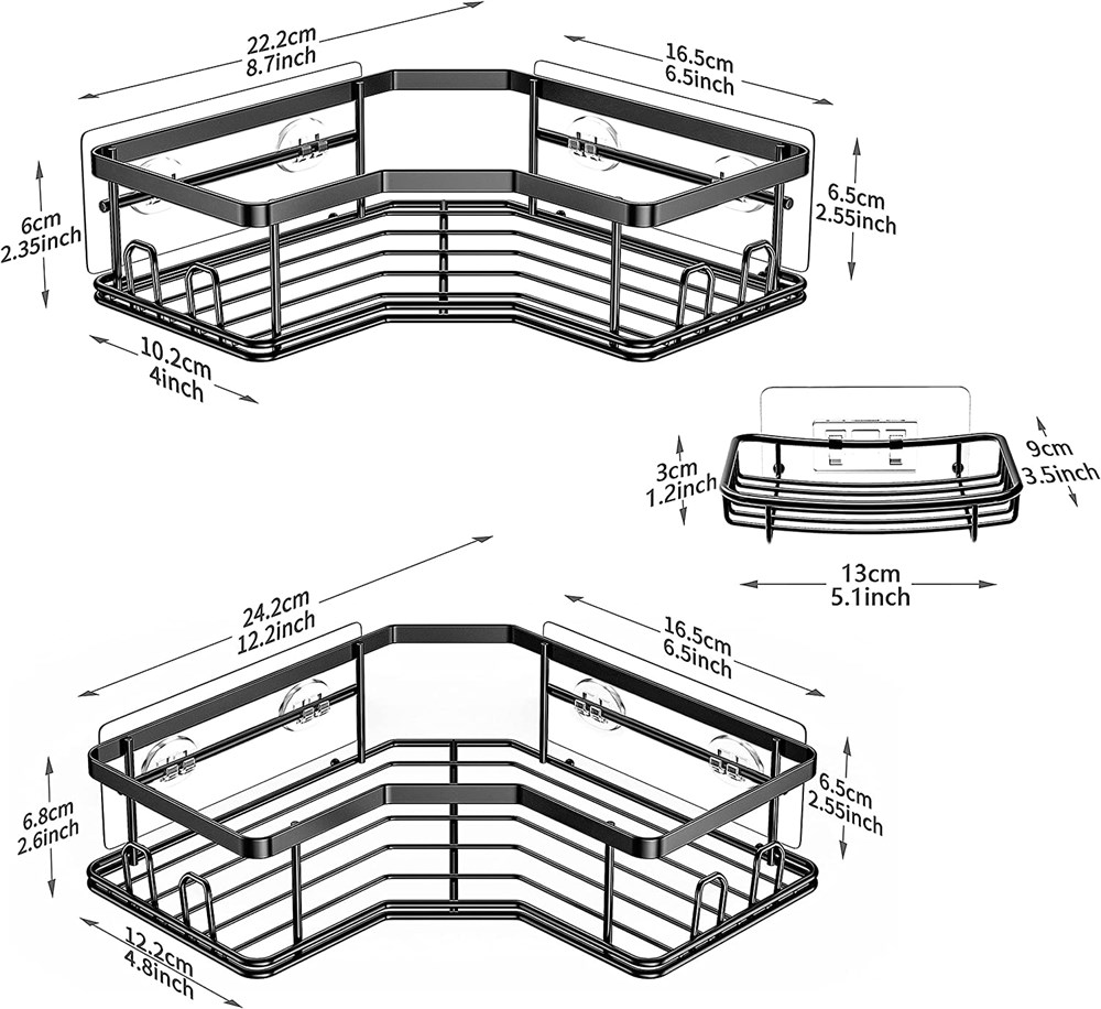 MAXIFFE,3-Pack Adhesive Stainless Steel Shower Rack (Matte Black)