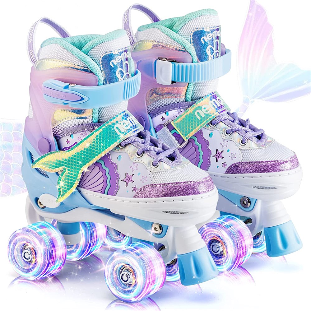 NEMONE Mermaid Adjustable Light up Roller Skates for Girls Size Small