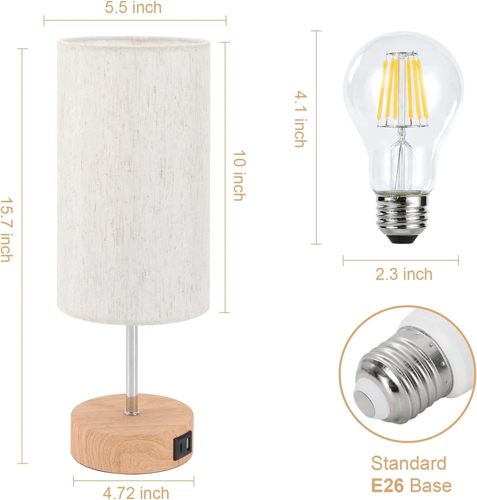Bedside Lamp w/USB & AC Outlet -Touch Control Table Lamp