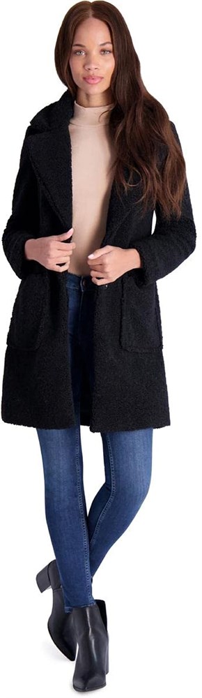 French Connection Womens Teddy Faux Shearling Fur Coat Black-L