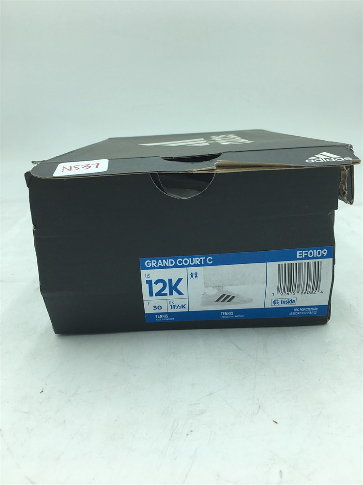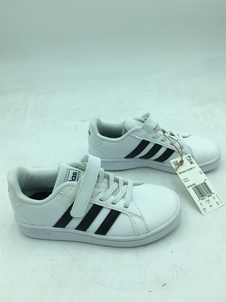 Adidas: Grand Court C Tennis Sneaker Shoes - Kids - White/Black - Size 12
