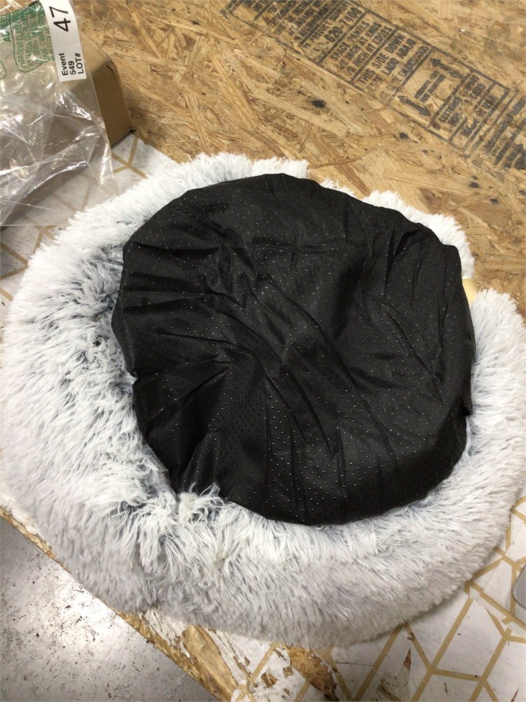 Faux Fur Pet Bed with Yellow Bottom and Yellow Strap, Light Gray - M