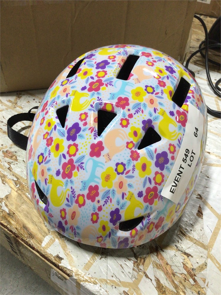 Kids Bike Helmet with Cats and Flowers