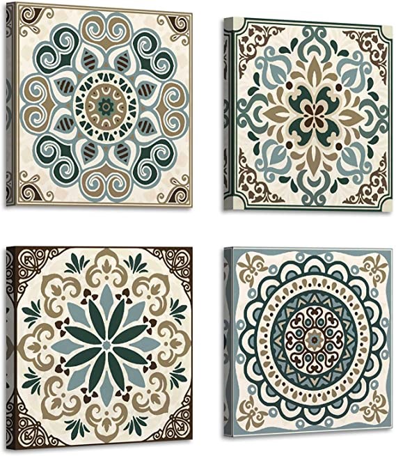 ARTISTIC PATH Bohemia Printing Wall Art:12" W x 12" H x 4 PCS, Multi-Size