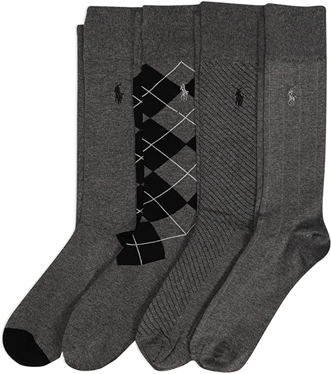 POLO RALPH LAUREN Men's Assorted Pattern Dress Crew Socks - 4 Pair
