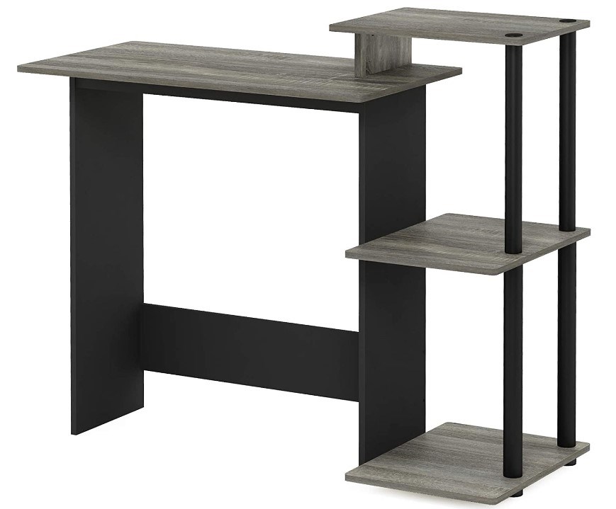 Furinno Efficient Computer Desk with Square Shelves, French Oak Grey/Black