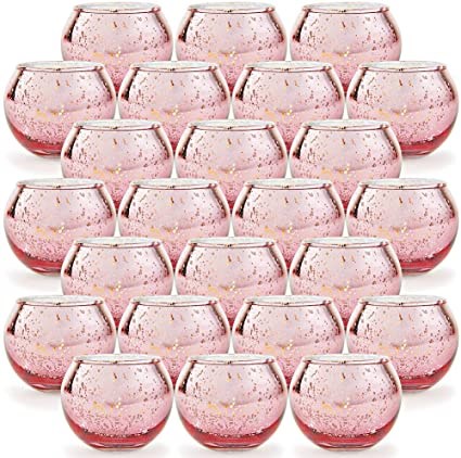 Round Rose Gold Votive Set of 24 Mercury Glass Tealight Candle Holders