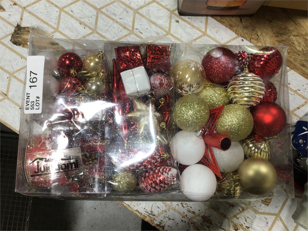 130 Pcs Assorted Christmas Set with Bow and Ball Ornaments, Shatterproof