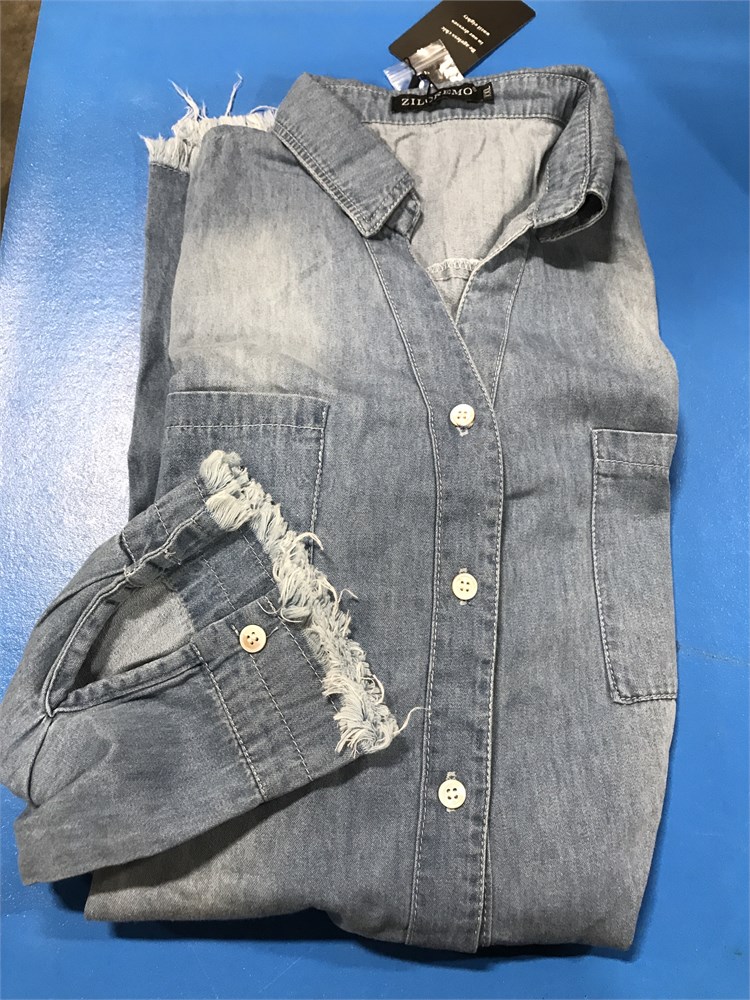 Zilcremo Womens Denim Long Sleeve Dress - XXL