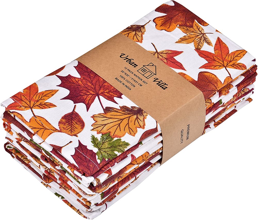 Urban Villa Harvest Leaf Print Premium Quality Dinner Napkins Set of 12