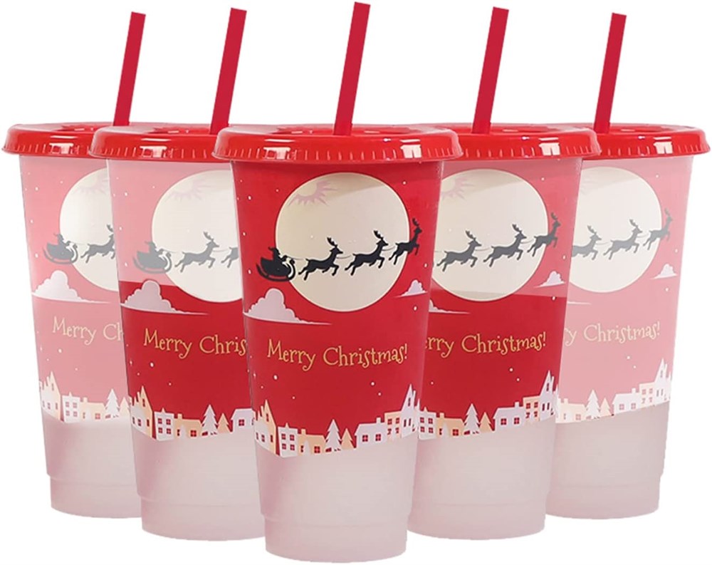 Christmas Color Changing Cups With Lids and Straws,5 pack 24oz