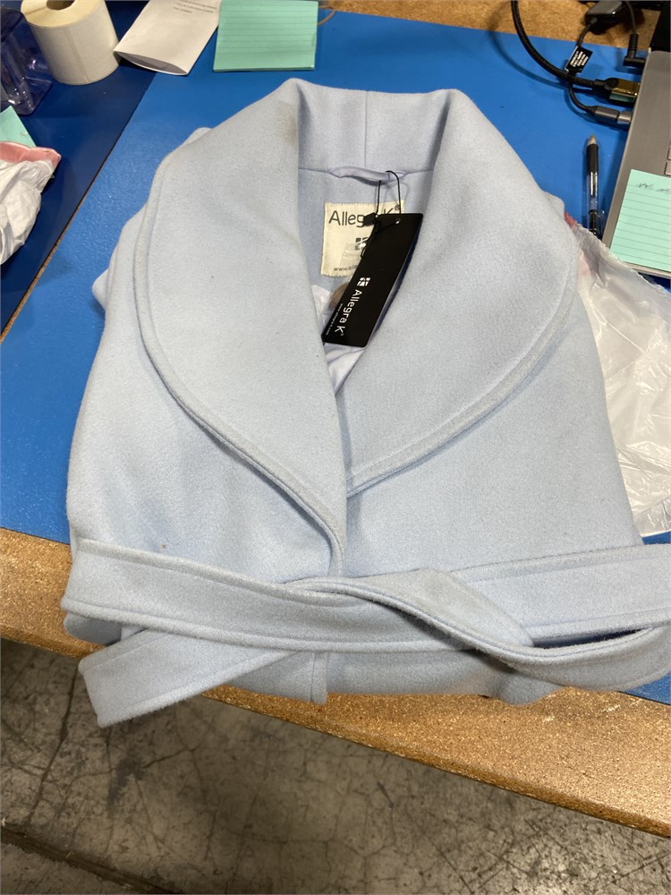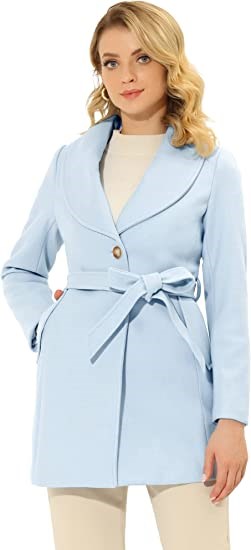 Allegra K Women's Single Breasted Winter Long Belted Coat Small Light Blue