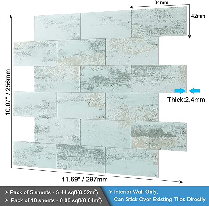 BeNice Stick on Subway Tiles Peel & Stick Backsplash (5sheets,Califonia Blue)
