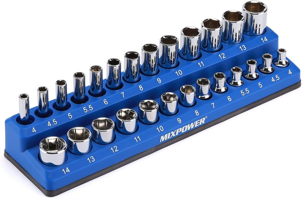 1/4" Metric Magnetic Socket Organizer, 13 Pcs Shallow & 13 Pcs Deep Socket