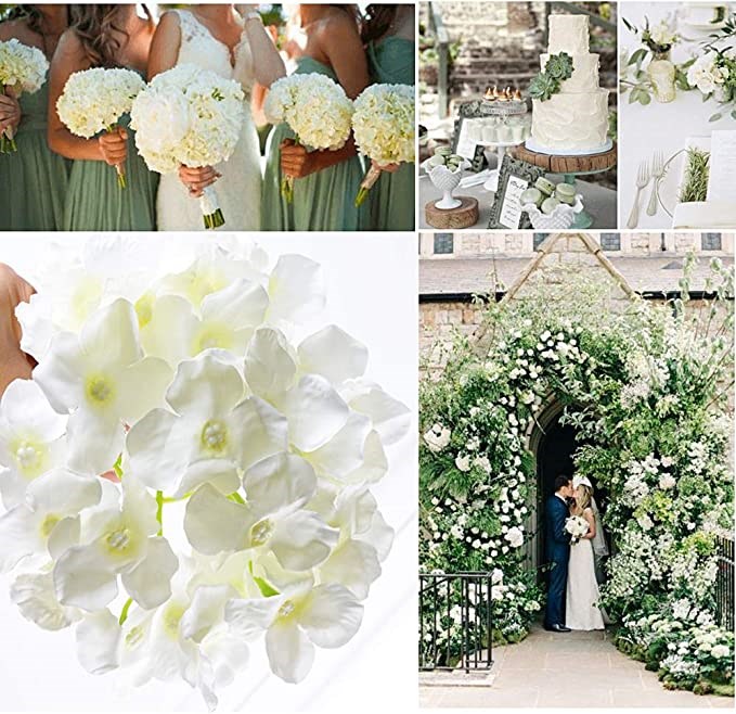 Artificial Flowers Hydrangea Flower Heads - 2 Pack - White
