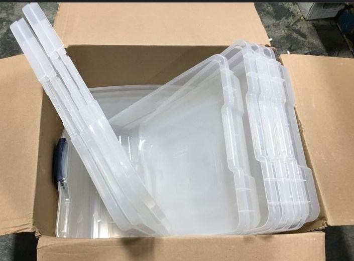 Rubbermaid 71 Qt. Clear Plastic Storage Bins with Tray Inserts, Pack of 4
