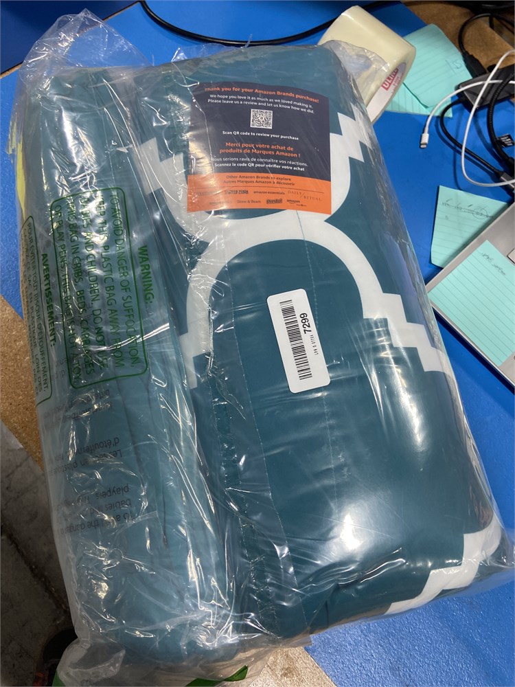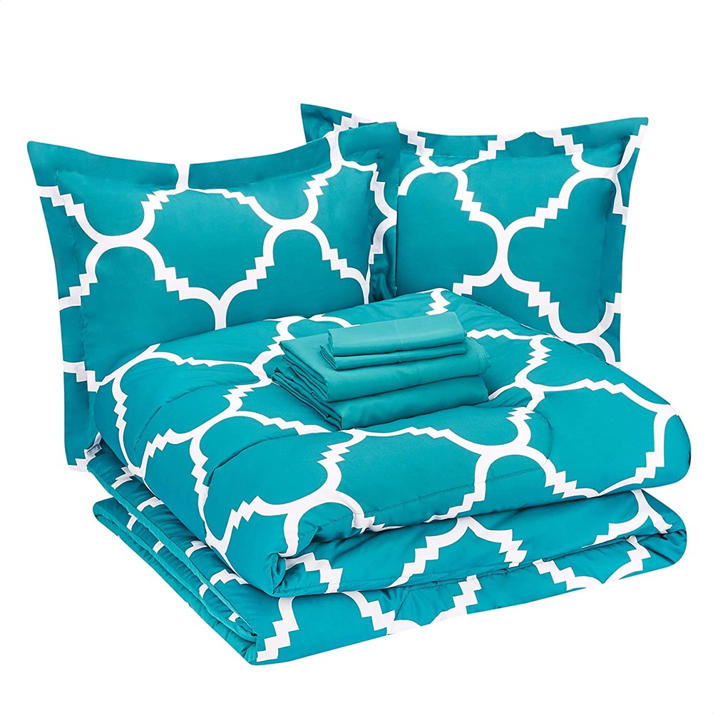 Amazon Basics 7pcs Comforter Bedding Set - Full/Queen, Teal Trellis 86x90