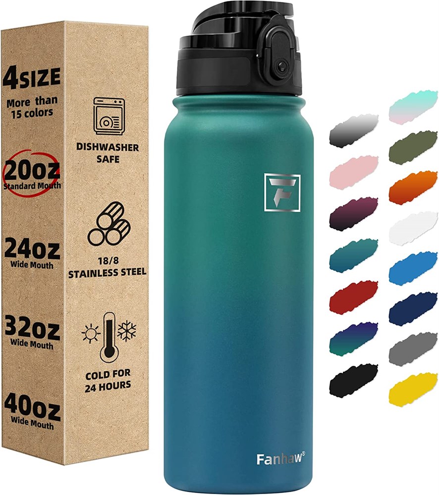 Fanhaw Insulated Water Bottle w/Chug Lid - 20 Oz Double-Wall