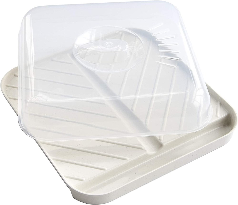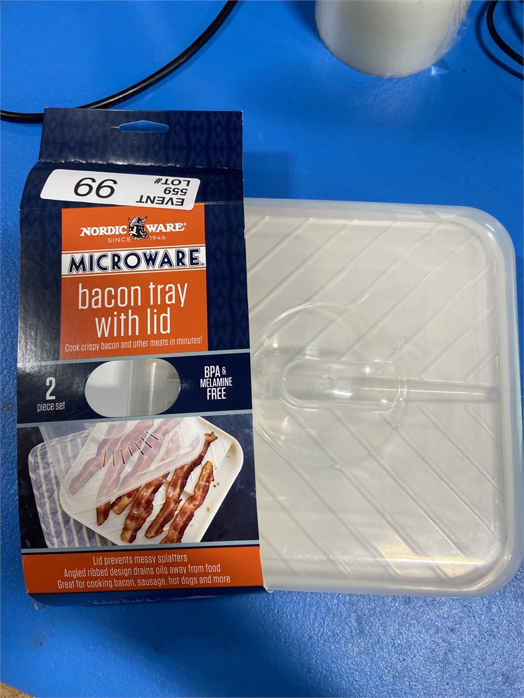 Nordic Ware Slanted Bacon and MeatTray, with Lid, White