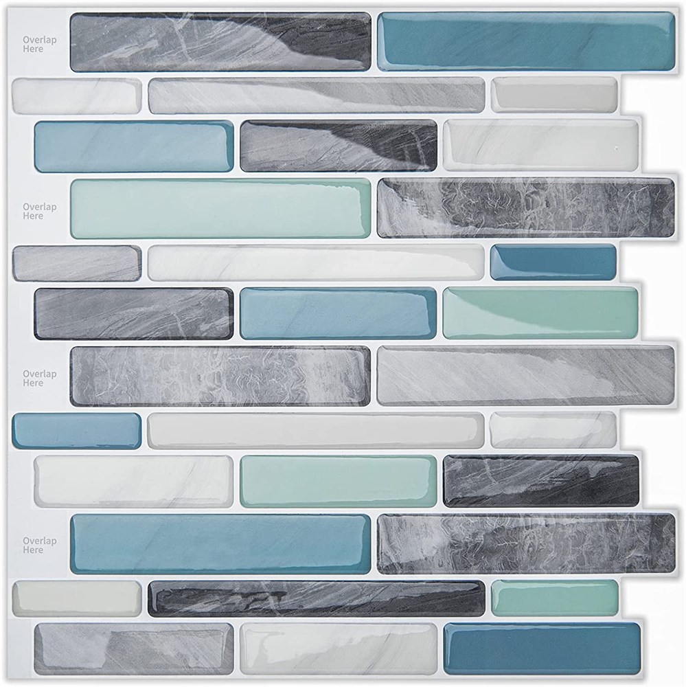 LONGKING Self-Adhesive Kitchen Backsplash, Marble (10 Tiles)