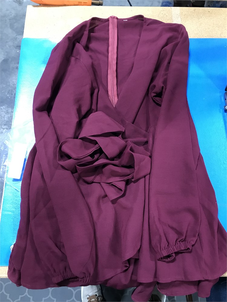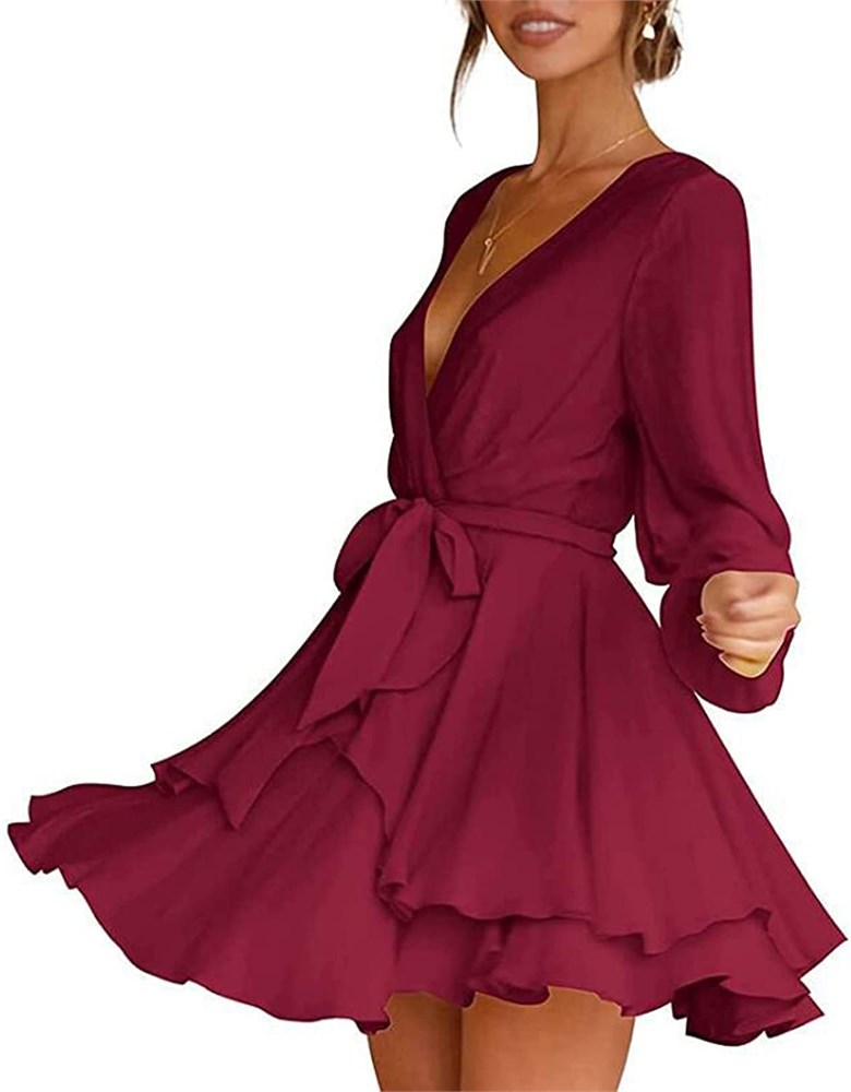 Women Deep V Neck Long Sleeve Tiered Ruffle Hem Mini Dress - 2XL