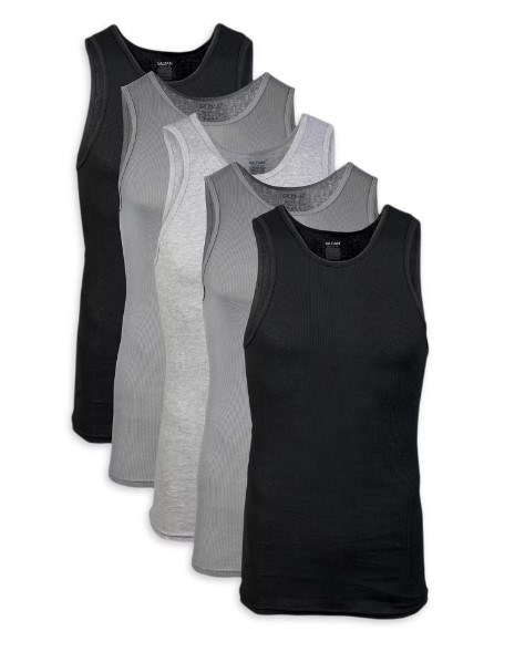 Gildan Men's Cotton Ribbed Assorted Color A-Shirt, 5-Pack, XL