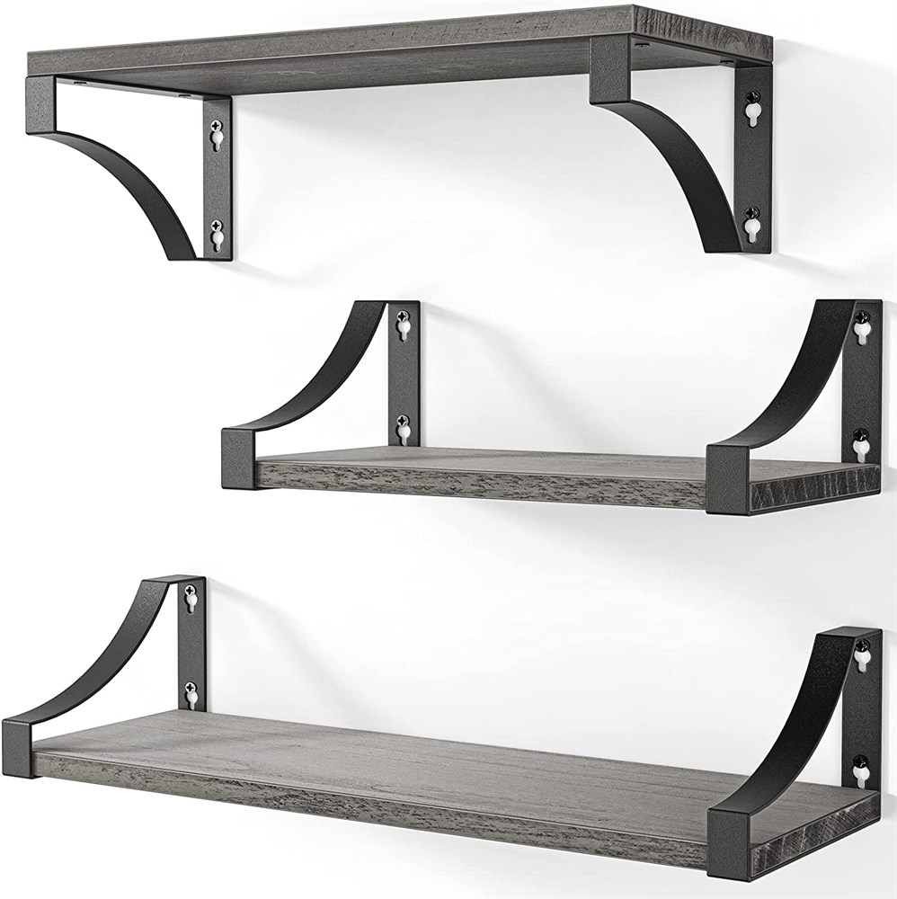 AMADA HOMEFURNISHING Floating Shelves Wall Mounted Set of 3 gray