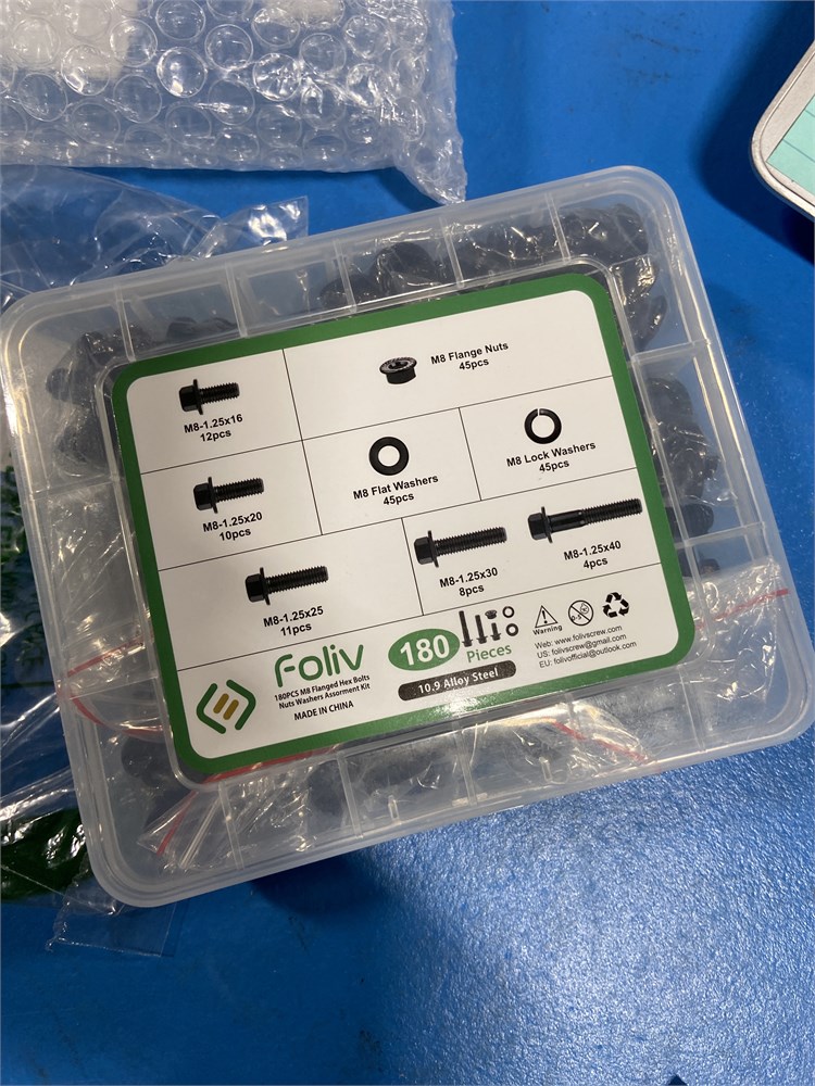 FOLIV M8 x 1.25 Bolt, 180PCS Flange Hex Head Kit, Fully Coarse Thread, Black