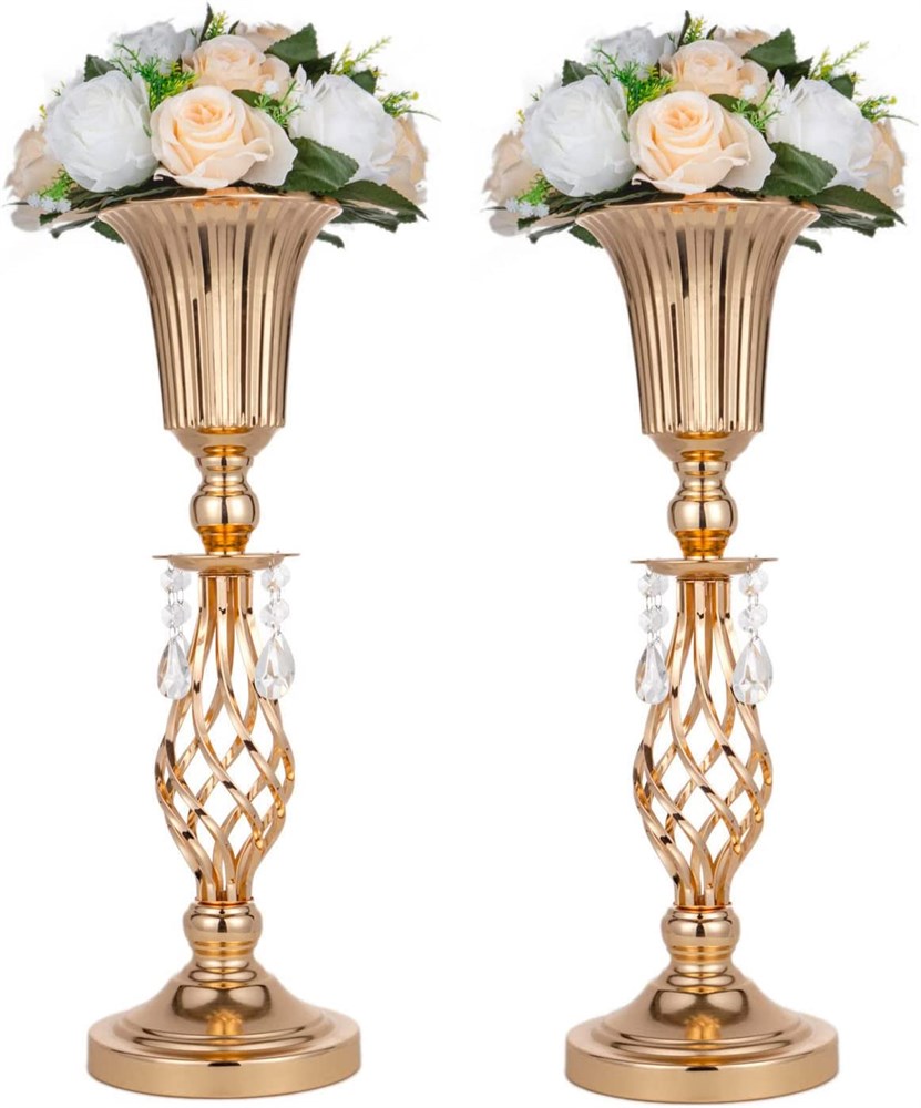 Set of 2 Tall Metal Wedding Centerpieces, Gold Flower Vase Stand,