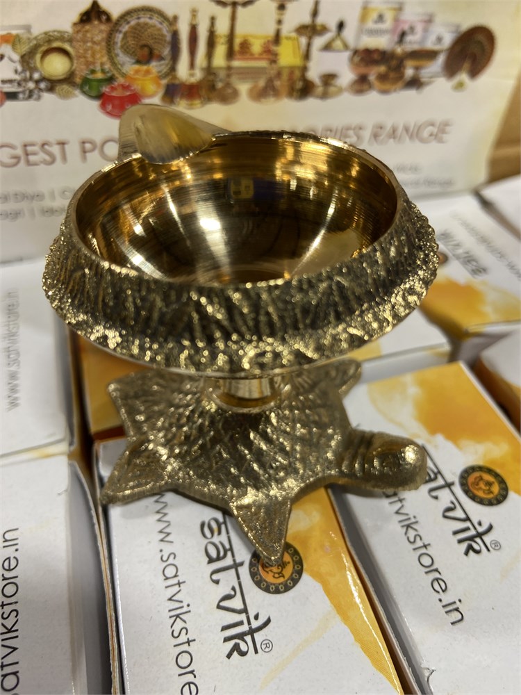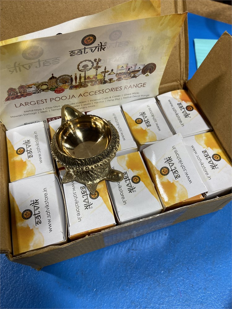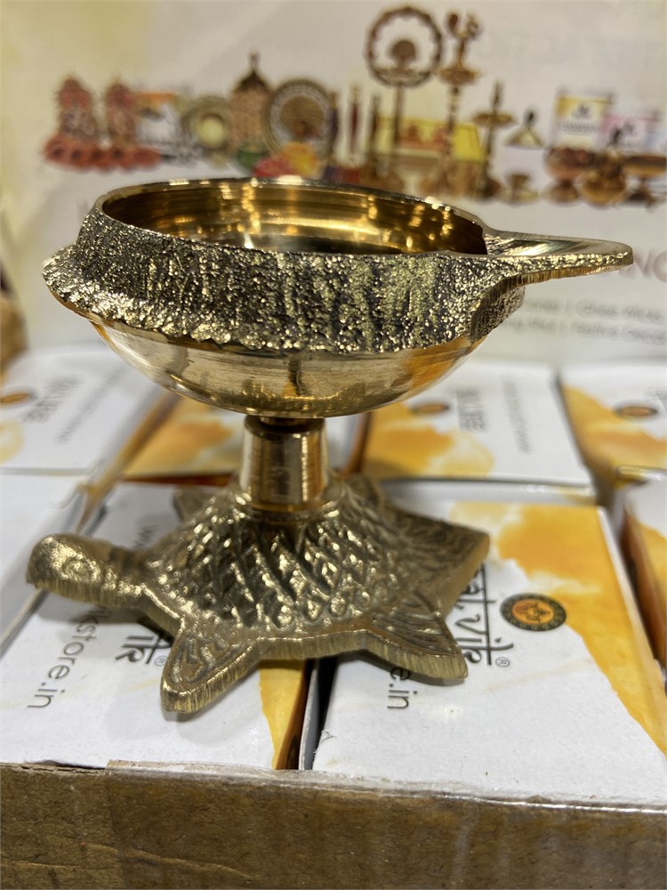 SATVIK 10 PC Kuber Turtle Diya Oil Lamp w/Golden Virgin Brass Metal