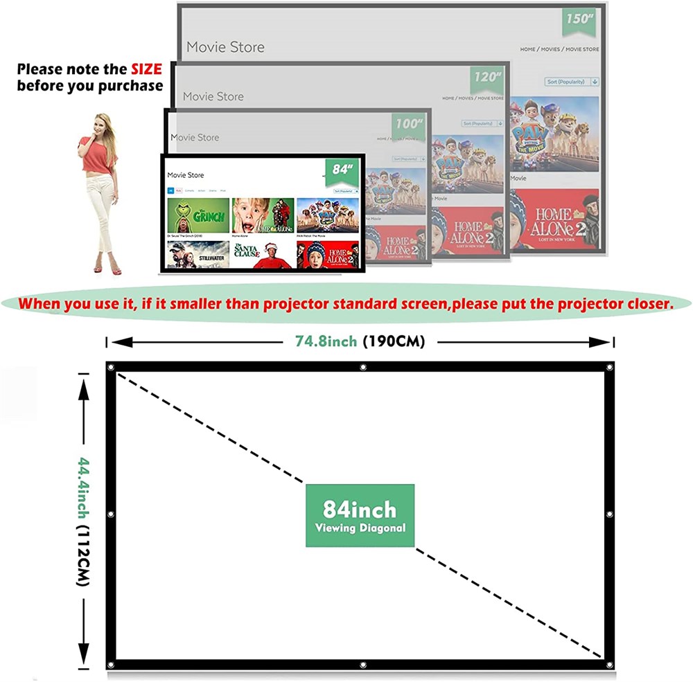 Projector Screen 84 inch Foldable and Portable Anti-Crease Indoor Outdoor