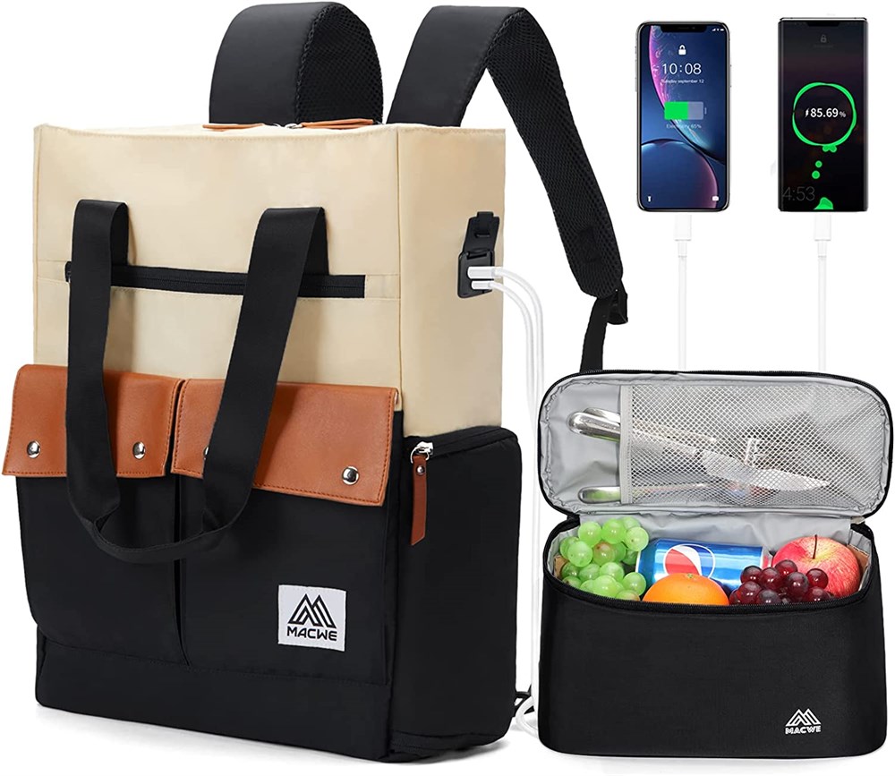 15.6 Inch Laptop Backpack Tote with Removable Lunch Bag