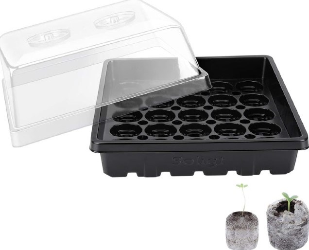 4 Set Strong Seed Starter Tray with 4" Humidity Dome and Pellet Holder