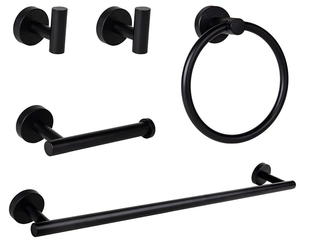 Grand Fixtures Matte Black Bathroom Hardware, 5 Pc Stainless Steel Set