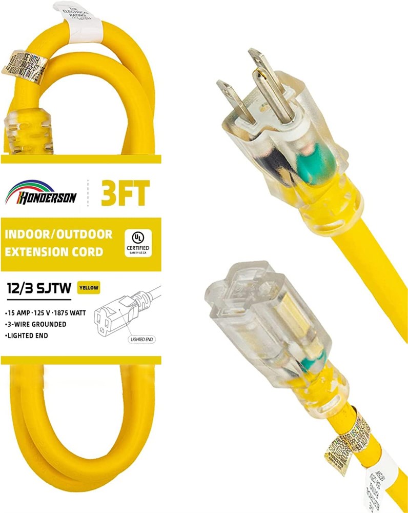 12 Gauge 3 Prong SJTW Heavy Duty Yellow Extension Cable
