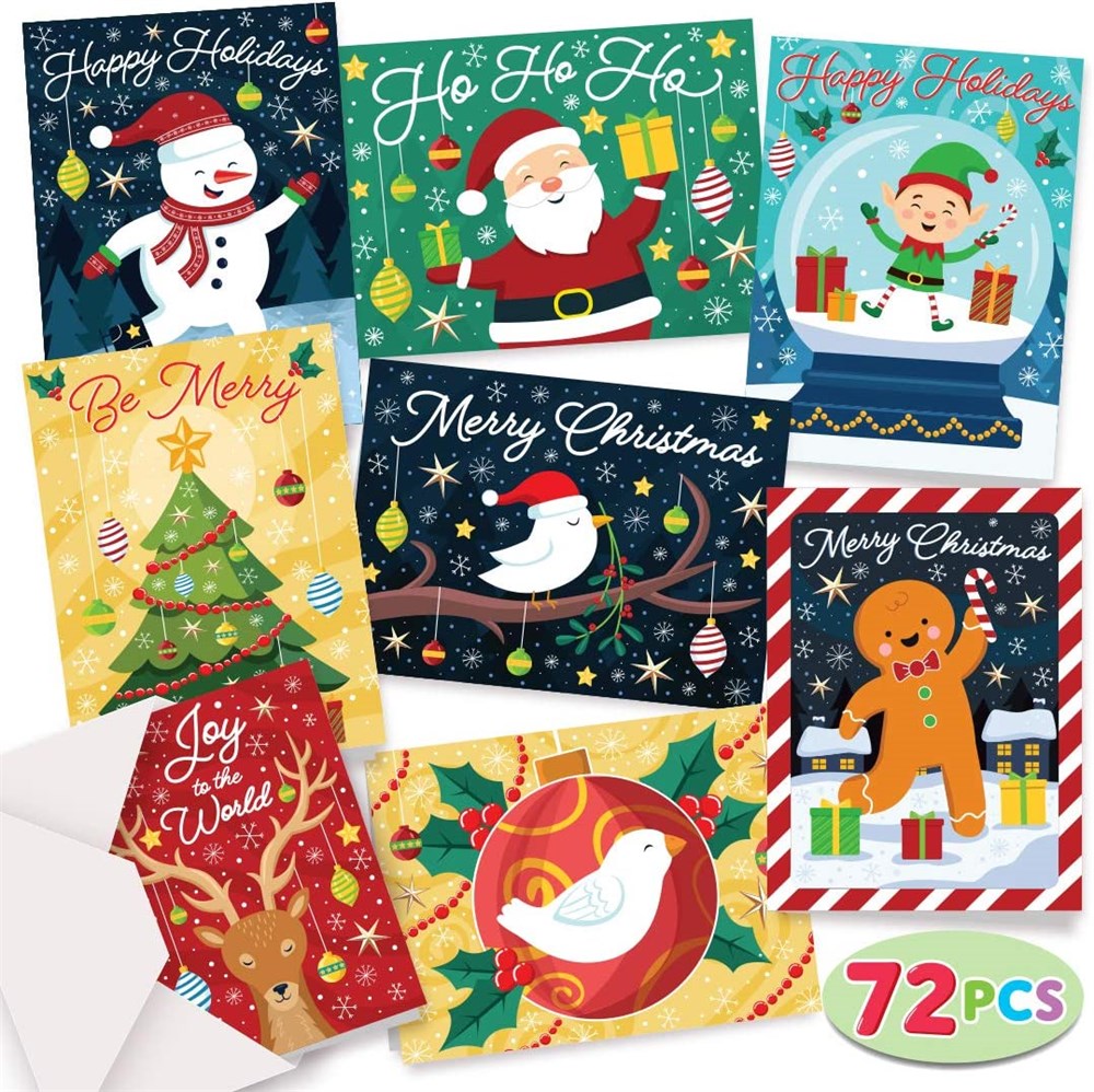 JOYIN Christmas Cards Colorful 72 Greeting Cards Collection with Envelopes