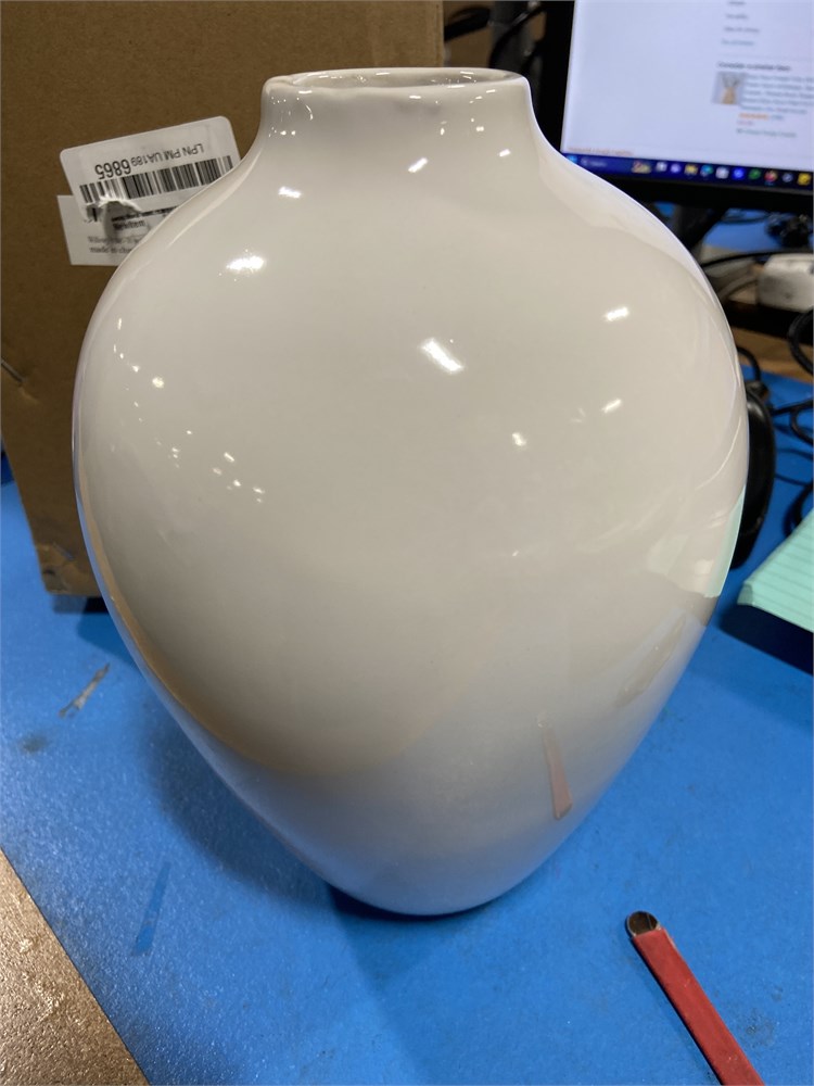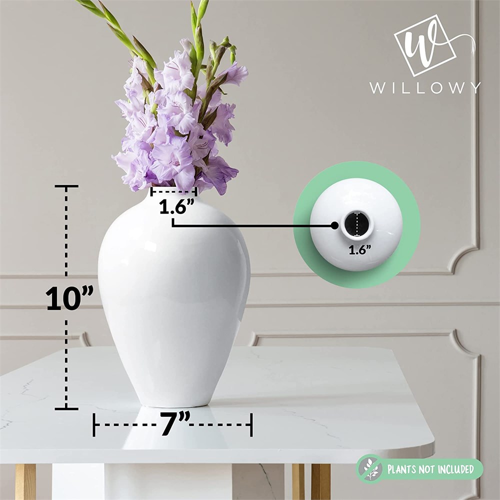 Willowy White Ceramic Vase - 10 Inch Tall