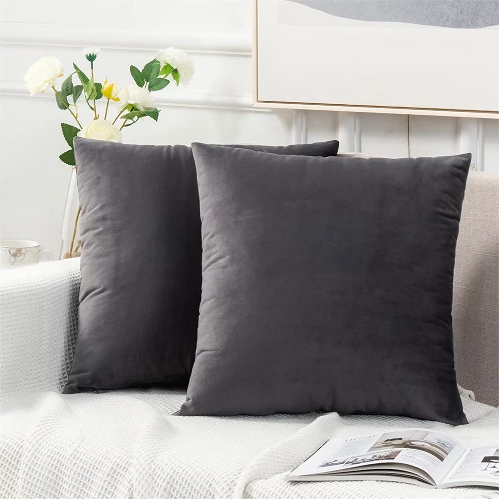 Homelike Moment Throw Pillow Covers 16x16 Set of 2, Dark Gray Velvet