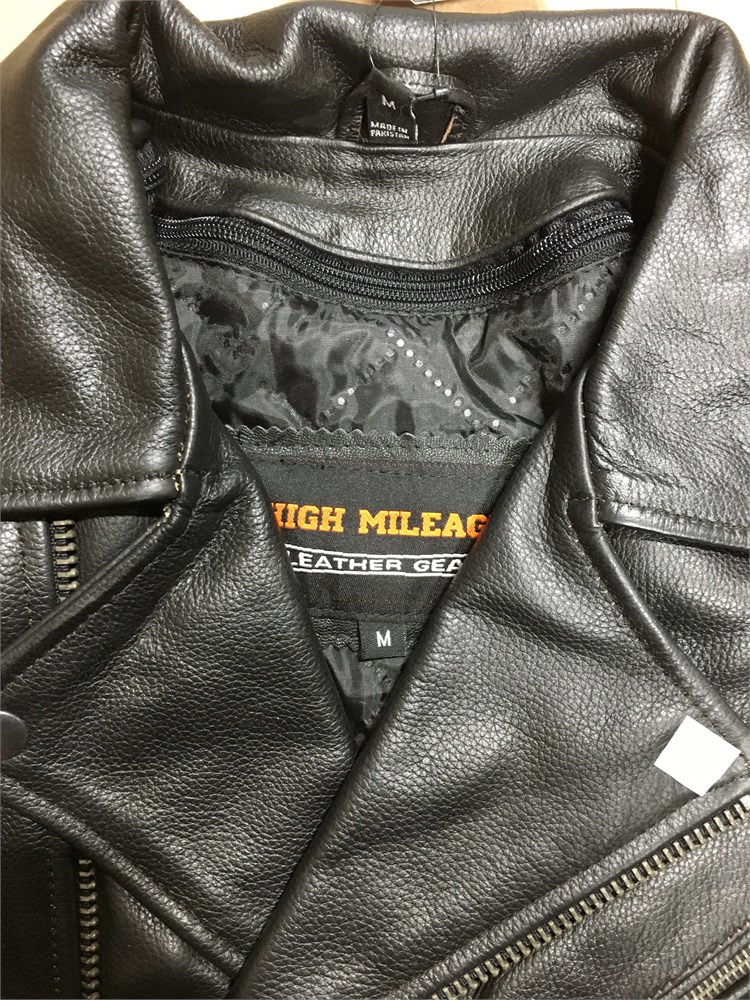 High Mileage Black Leather Motorcycle Jacket, Medium