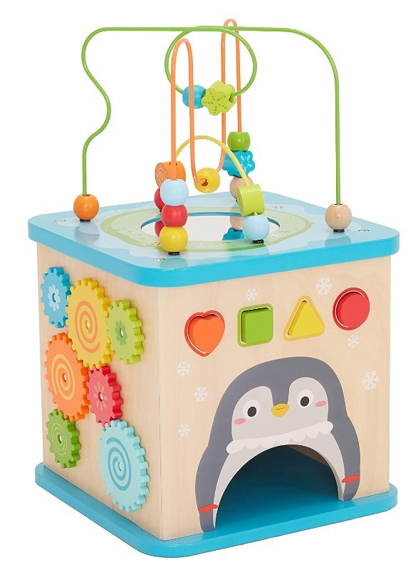 Amazon Basics Wooden Activity Learning Cube-Kids Activity Cube