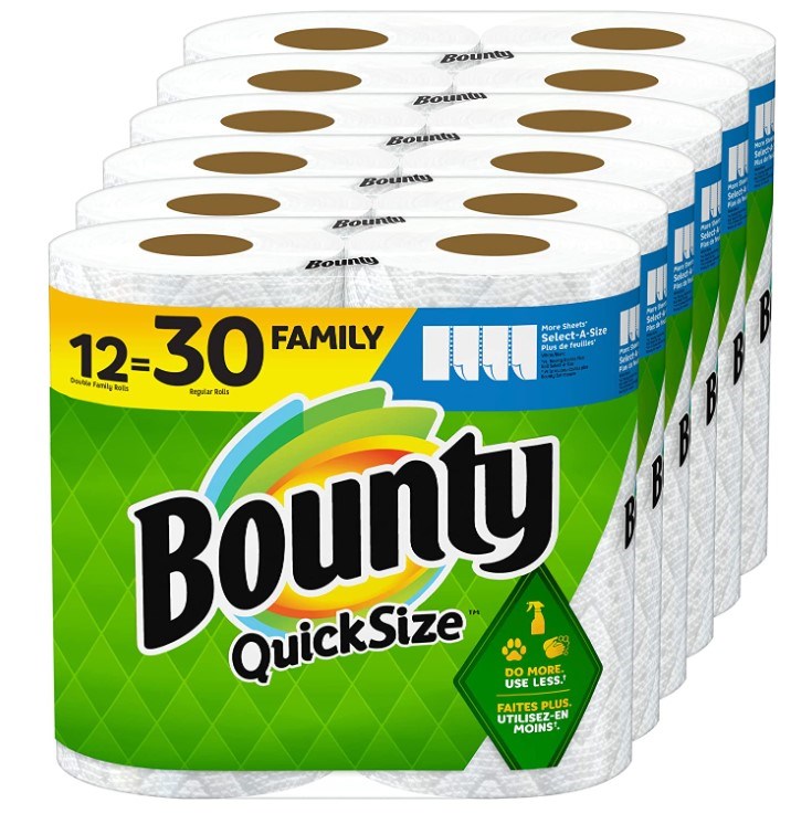 Bounty Quick-Size Paper Towels, White, 12 Family Rolls