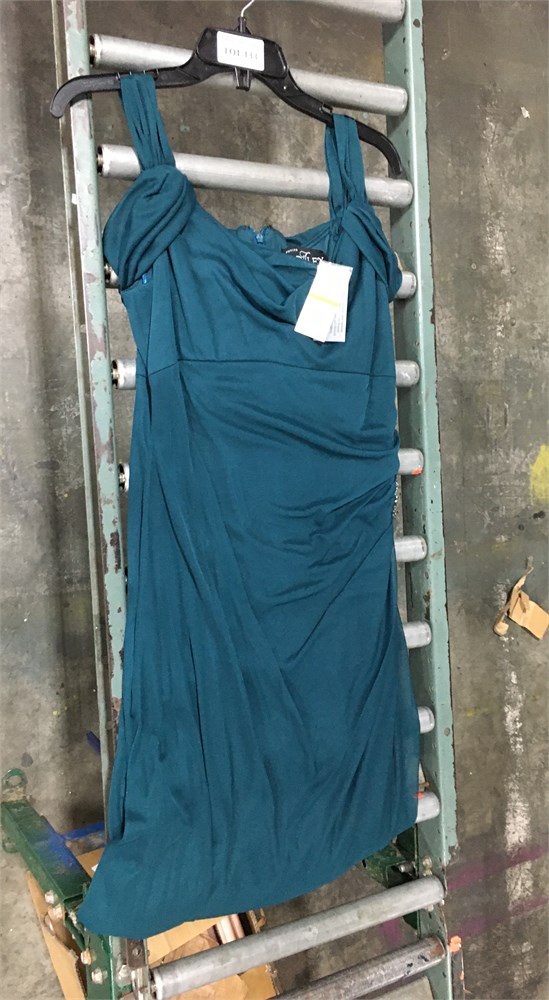 Alex Evenings Embellished Cold Shoulder Column Gown in Emerald Aqua, 14P