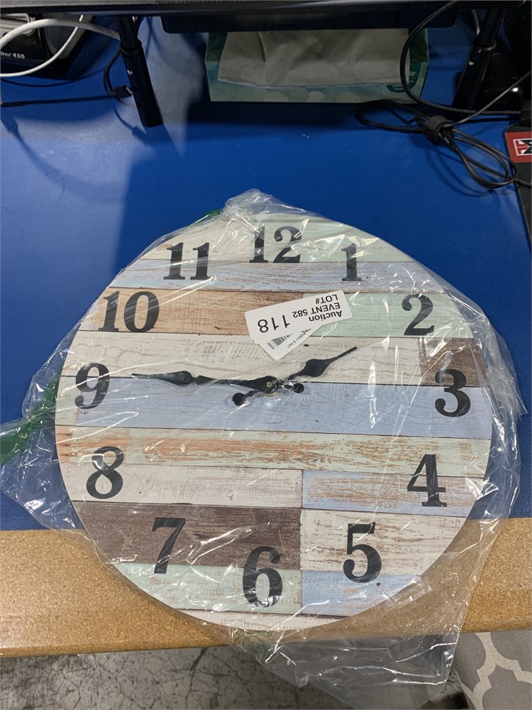 Stonebriar Vintage Coastal Worn Blue 18" Round Wall Clock