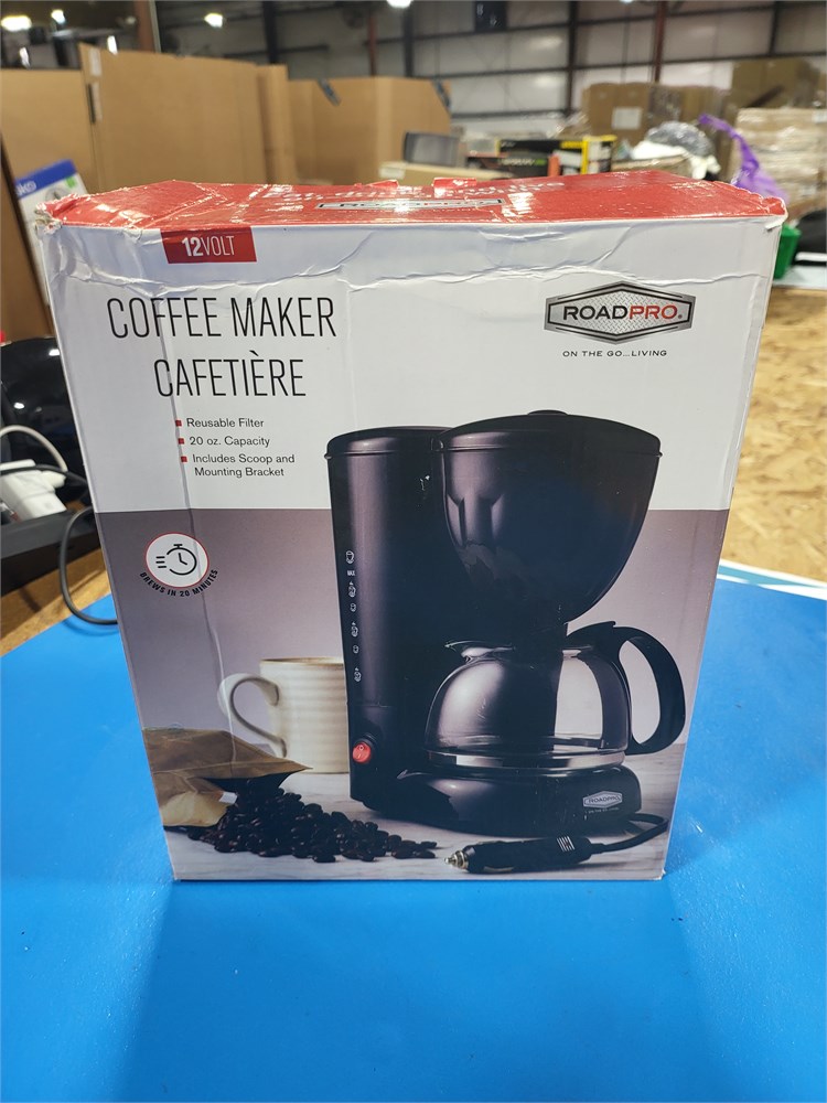 RoadPro RPSC785 12-Volt Coffee Maker with Glass Carafe Reusable Filter 20oz