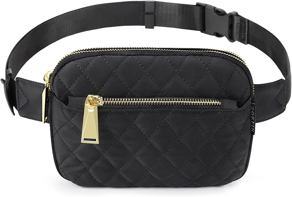 ZORFIN Crossbody Fanny Pack, Quilted Black