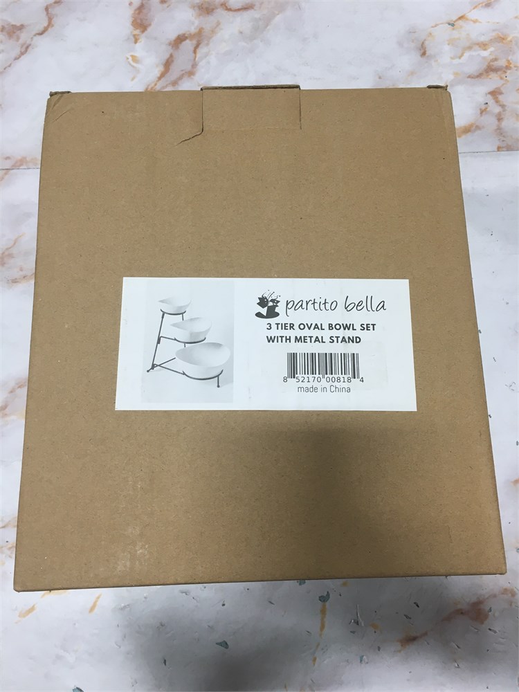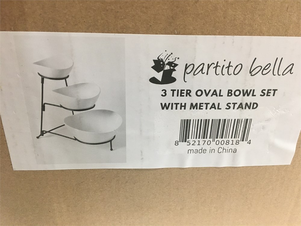 Partito Bella 3 Tier White Oval Bowl Set with Collapsible Thicker Metal Rack