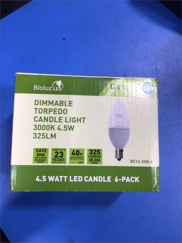 Bioluz LED 6-Pack, 325LM, 4.5-Watt Torpedo Candle Light Bulbs