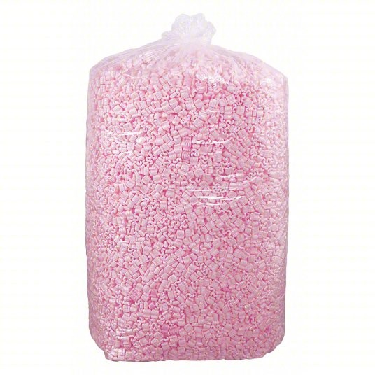 Packing Peanuts: 20 cu ft Bag Size, Pink, S-Shaped, 29 in Bag Ht